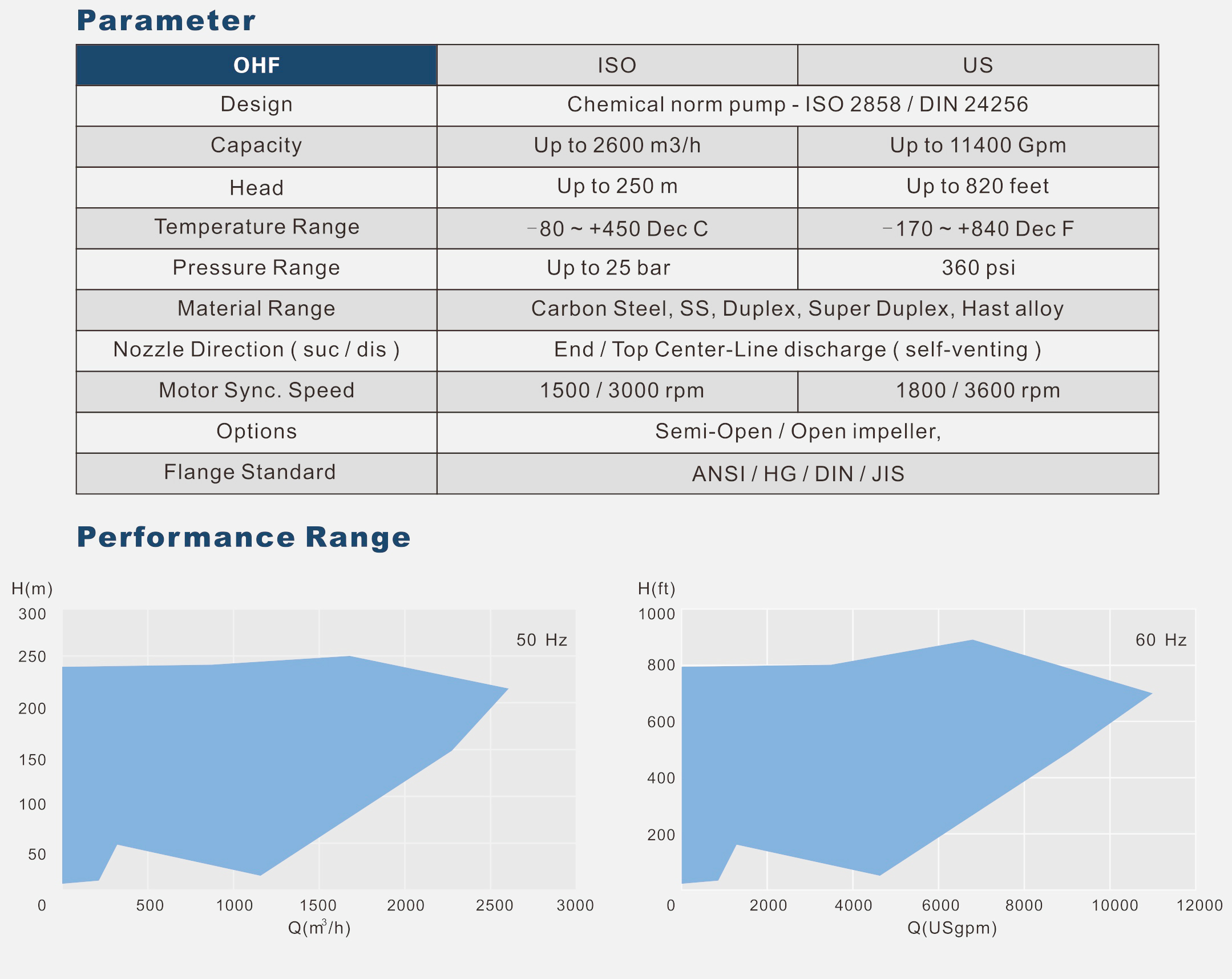 The OH2, type OHF is an over hung end suction, volute casing, radially split pump with a back pullout design.