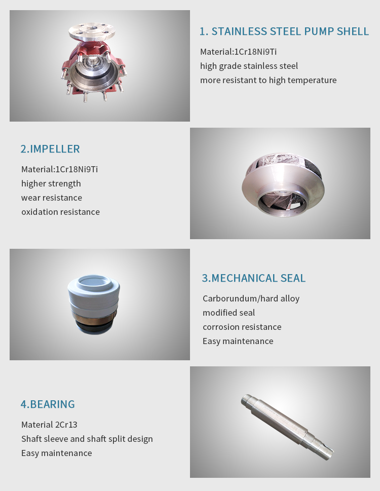 IH-type pump is a horizontal single-stage, single-suction chemical pump for industrial, agricultural and drainage. it is mainly used for transferring various corrosive liquids, and liquids containing a small amount of particles. The production is in strict accordance with ISO2858.